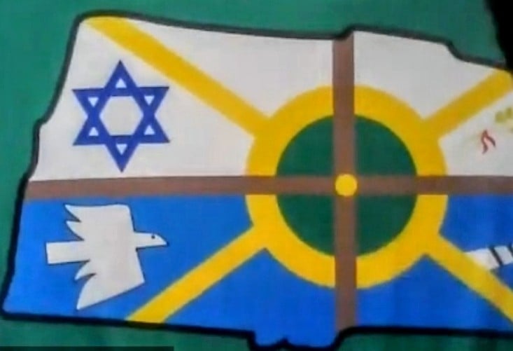 La bandera costa de 10 símbolos que representan las colectividades y los elementos más importantes para el desarrollo de la localidad