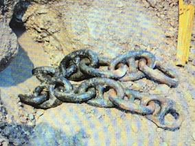 Lo que se resistía a salir eran dos pequeños tramos de cadenas, de unos ocho o nueve eslabones, aún unidos por su anclaje original. Eran parte de las históricas cadenas del combate de la Vuelta de Obligado.