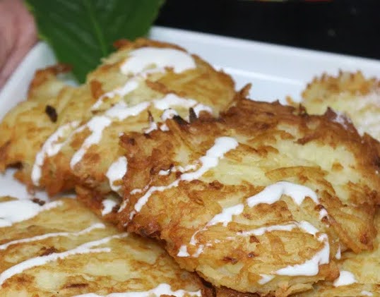 Latke es una palabra en Idish que quiere decir “torta”. Hay una estrecha relación entre los latkes de papa y Janucá. En el siglo XVII, los judíos de Europa y sobre todo de Rusia, quisieron incluir en su cocina algo especial que estuviera en relación directa con el milagro de Janucá. La costumbre de comer latkes en Janucá se extendió y hoy en día parece que no se festeja Janucá si no se incluye en la cena.
