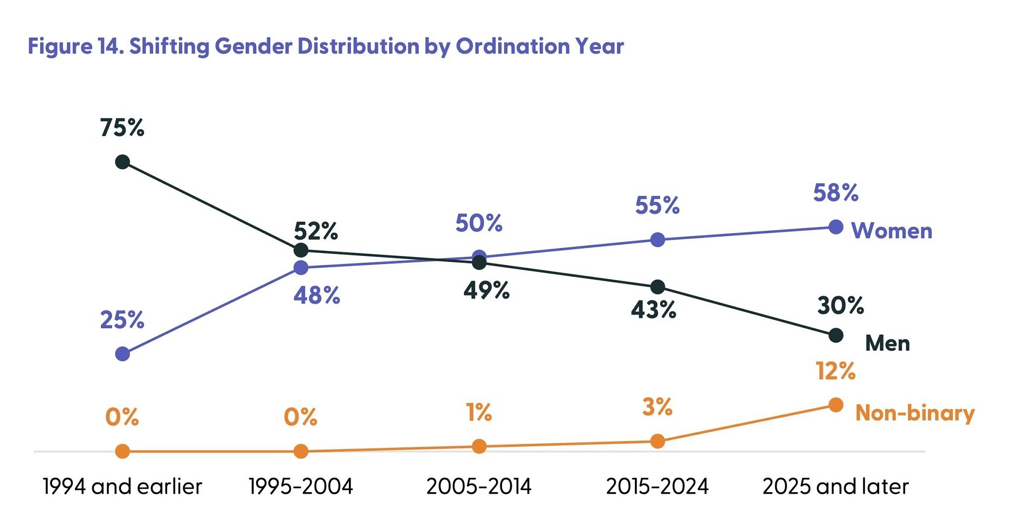 “Este cambio no es un accidente”, dijo, refiriéndose al nuevo estudio. “Es un resultado predecible de una tradición que siempre ha sido renovada por personas que atraviesan la agitación. Cuando personas que han tenido que reimaginar valientemente sus propias vidas asumen un liderazgo espiritual, aportan claridad, empatía y un compromiso con la justicia que enriquece a toda la comunidad. Eso te muestra de dónde viene esa energía.”