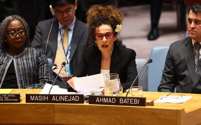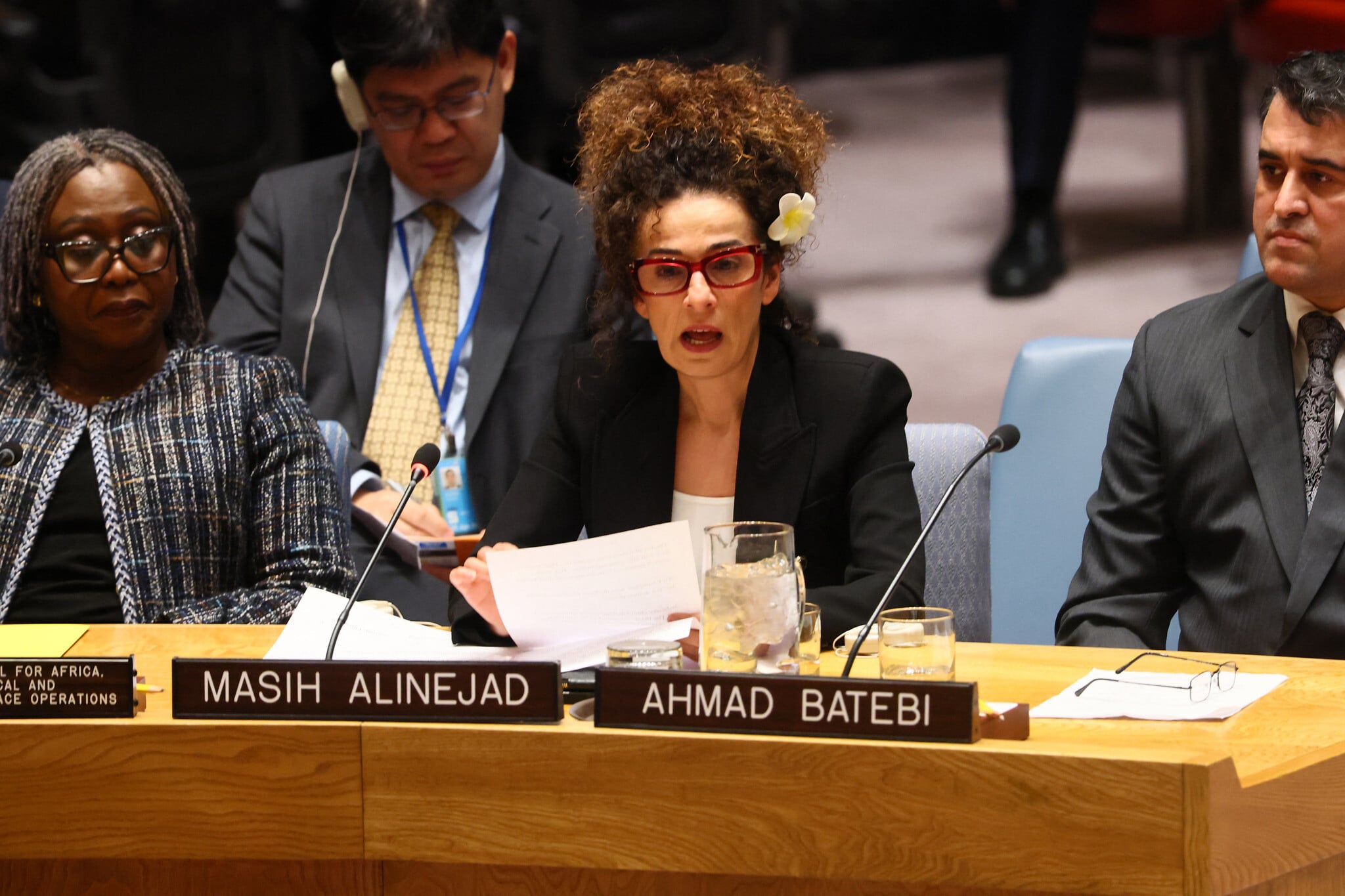 En el Consejo de Seguridad de la ONU en Nueva York, el periodista iraní-estadounidense Masih Alinejad, invitado a dirigirse al organismo por Washington, dijo que “todos los iraníes están unidos” contra el sistema clerical en Irán.