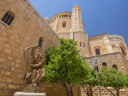 El templo que guarda el sepulcro fue en su origen una humilde iglesia bizantina, utilizada por monjes franciscanos que fueron expulsados por los musulmanes en el siglo XVI.